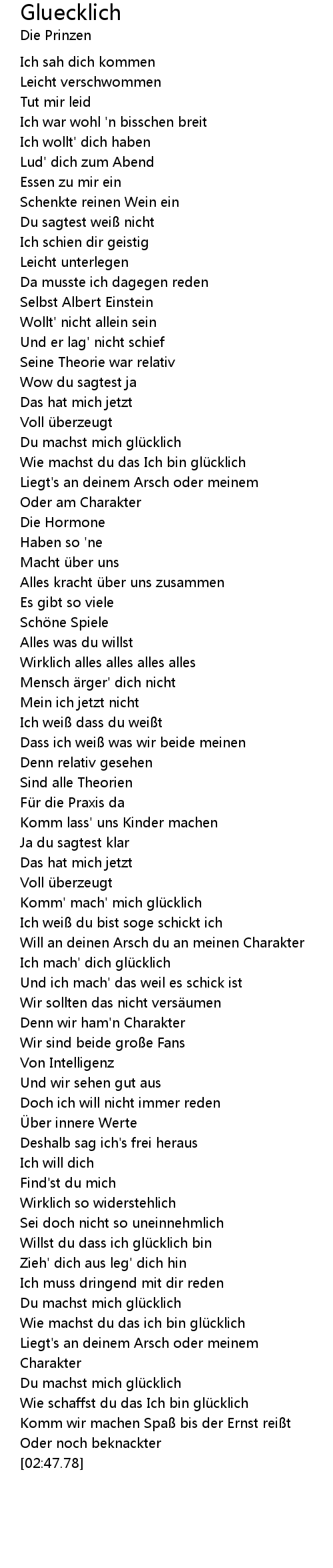 | [02:37.45] | Wie schaffst du das Ich bin glücklich |