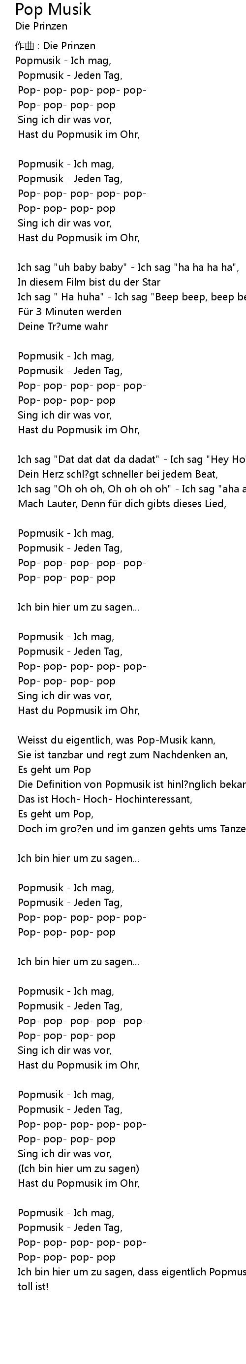 | Die Definition von Popmusik ist hinl? nglich bekannt, | |