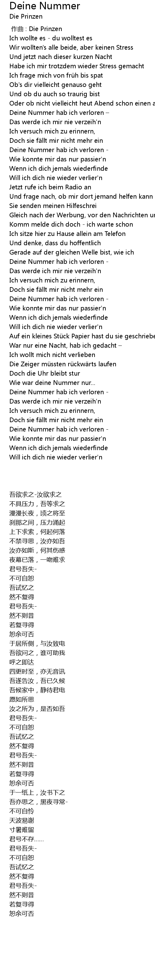 | [00:00.00] | zuò qǔ : Die Prinzen |