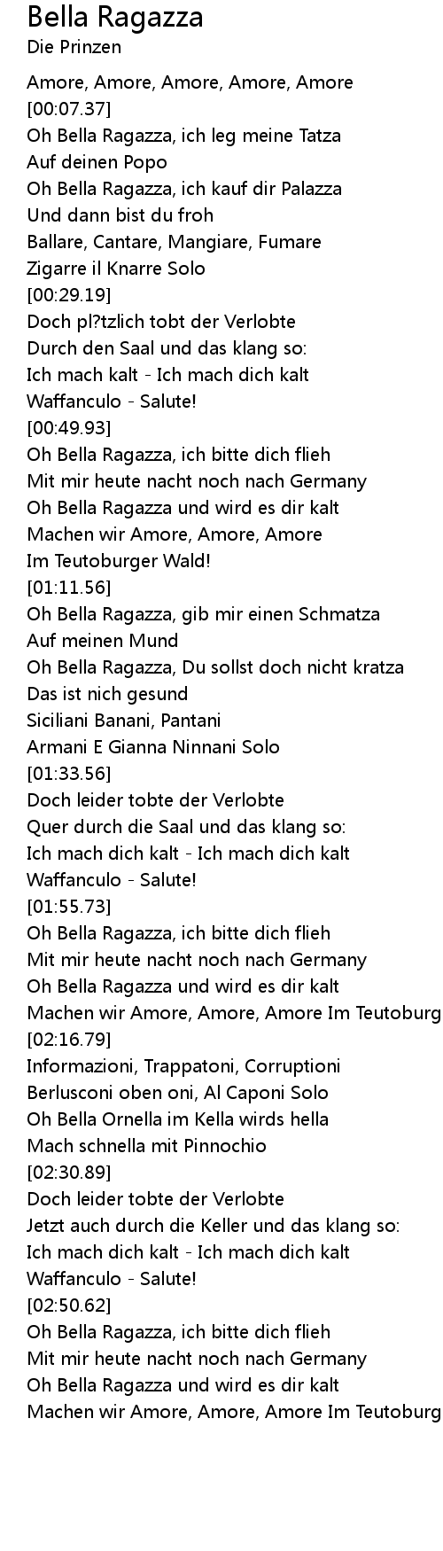 Oh Bella Ragazza, gib mir einen Schmatza |