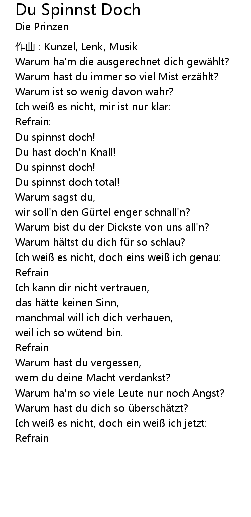 | Ich wei es nicht, doch eins wei ich genau: | |