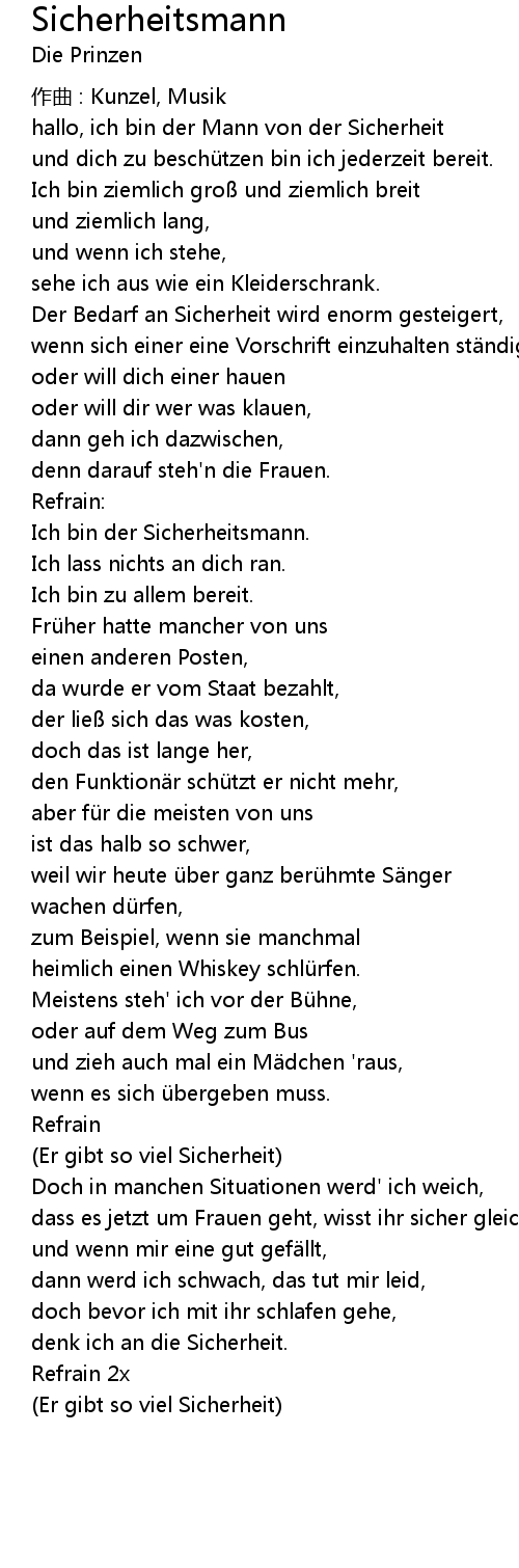 | 歌曲 | Sicherheitsmann |