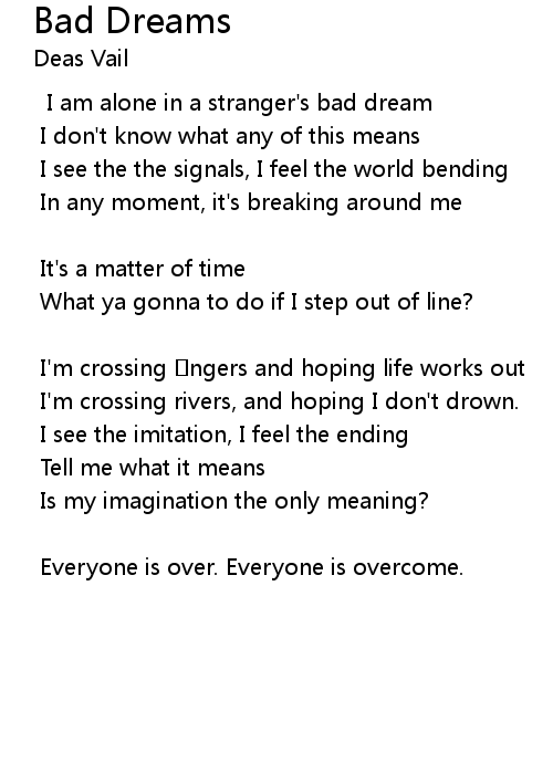 | I' m crossing rivers, and hoping I don' t drown. | |