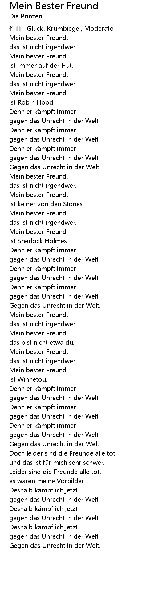 | 歌曲 | Mein Bester Freund |