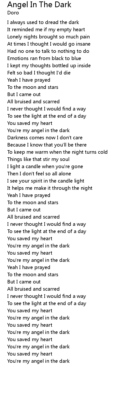 You're my angel in the dark |
