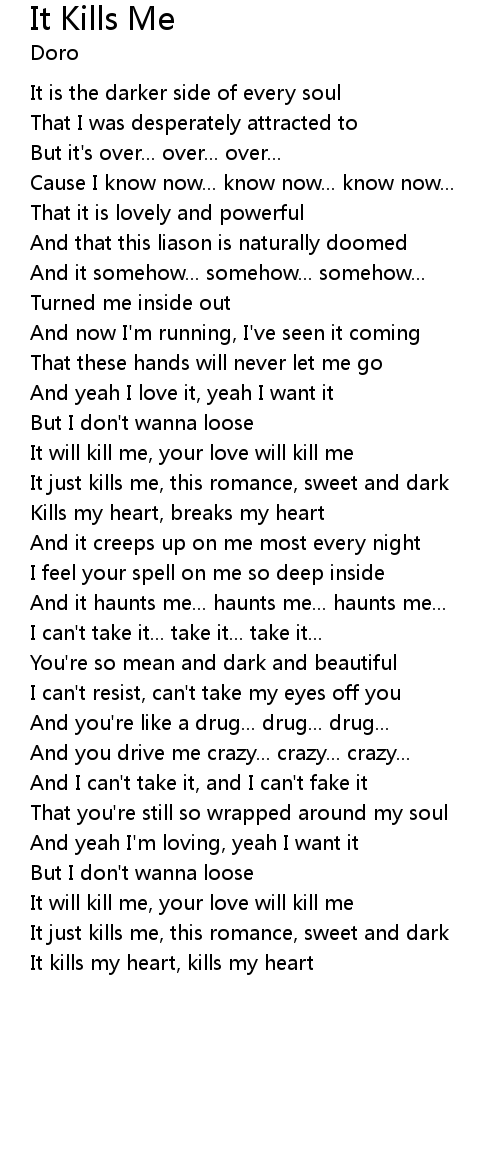 It just kills me, this romance, sweet and dark |