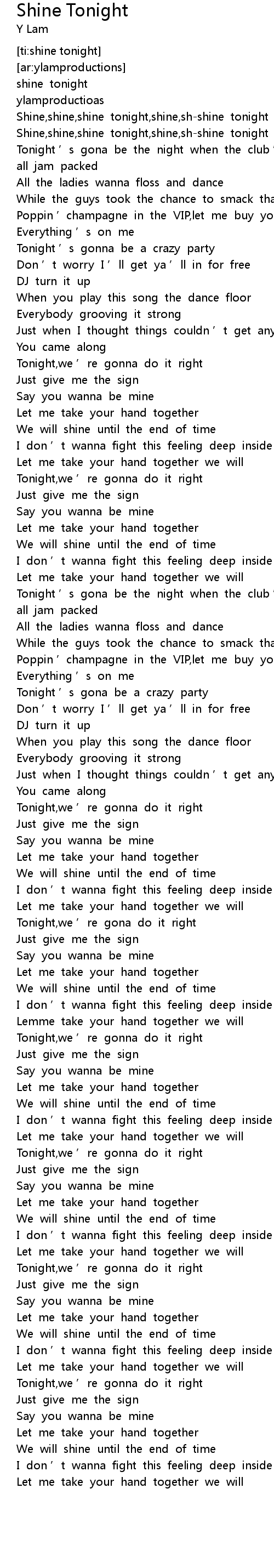 | [00:15.105] | Shine,shine,shine tonight,shine,sh-shine tonight |