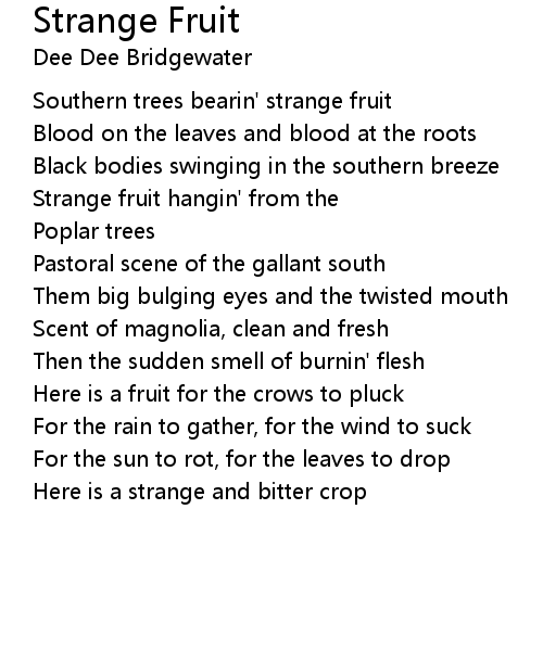 | Southern trees bearin' strange fruit | |