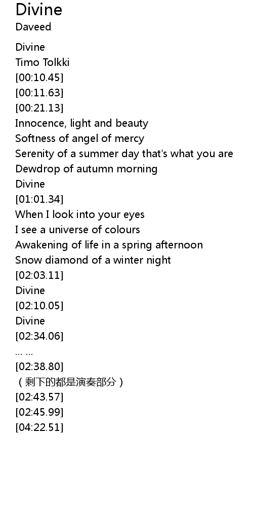 | [00:39.31] | Serenity of a summer day that's what you are |