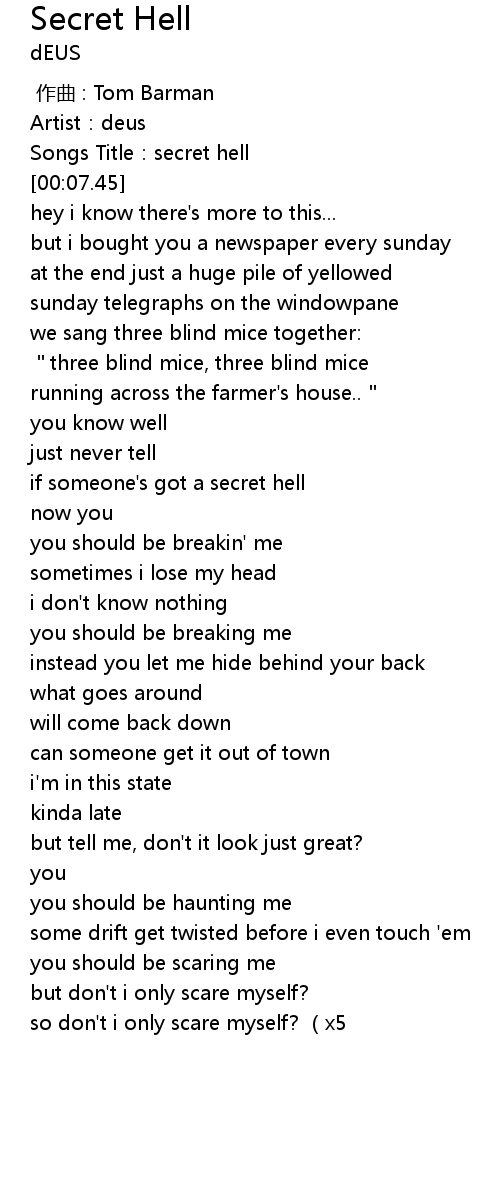 | [00:07.26] | Songs Title: secret hell |