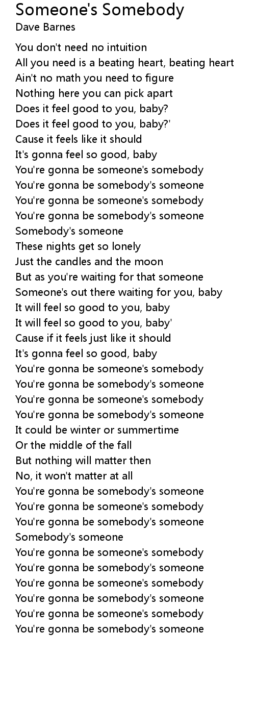 You're gonna be someone's somebody |