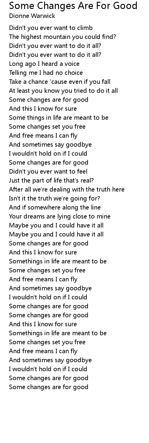 Some changes are for good |