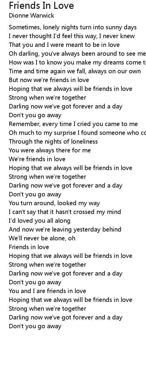 But now we're friends in love |