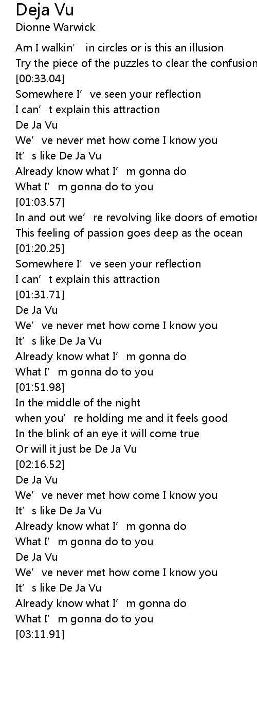 | [00:51.53] | It' s like De Ja Vu |