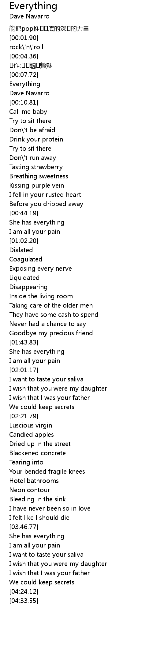 | [04:05.73] | I want to taste your saliva |