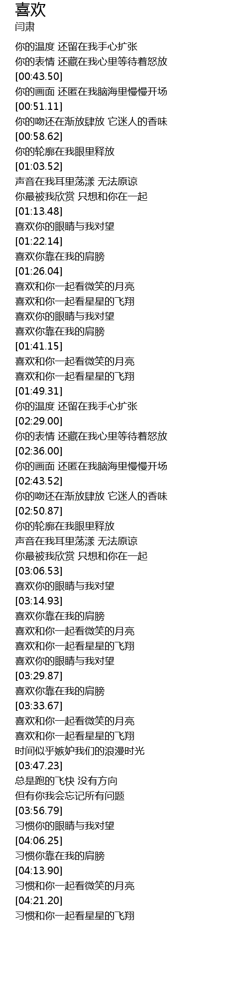 | [03:30.47] | 喜欢你靠在我的肩膀 |
