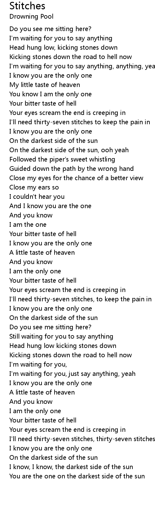 I'll need thirty-seven stitches, thirty-seven stitches, yeah |
