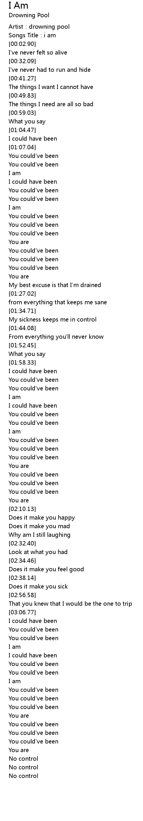 | [00:00.71] | Artist: drowning pool |