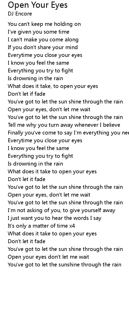 | Open your eyes don't let me wait | |