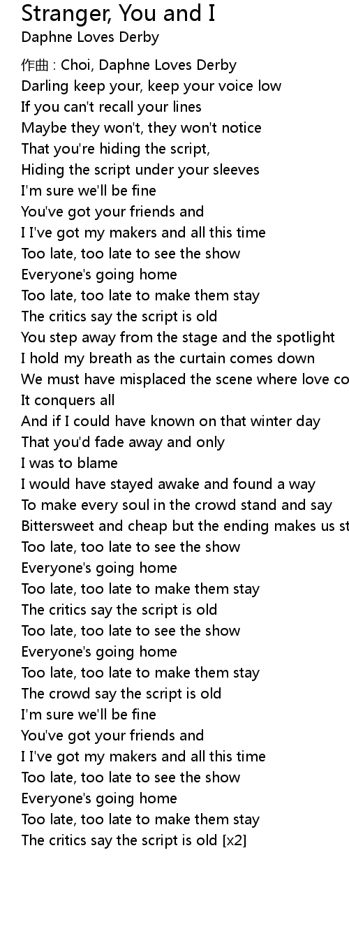 | 歌曲 | Stranger, You and I |