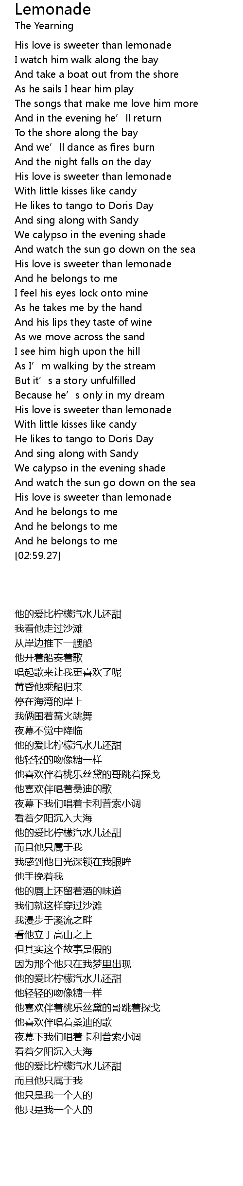 | [02:11.45] | 他的爱比柠檬汽水儿还甜 |