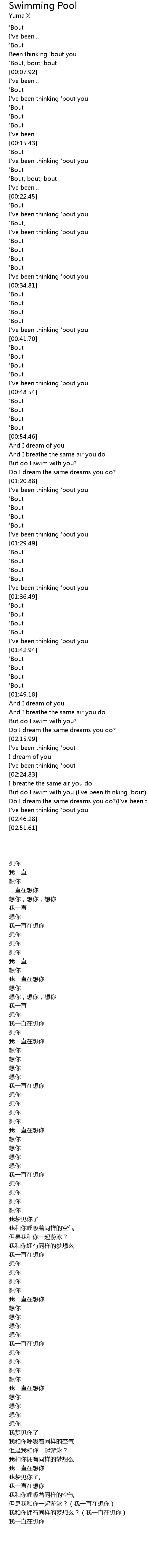 | [02:29.26] | 但是我和你一起游泳?(我一直在想你) |