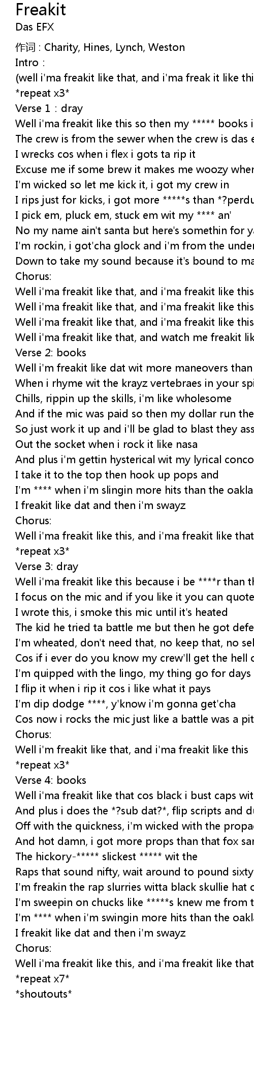 | Well i'ma freakit like this because i be ****r than the ****st | |