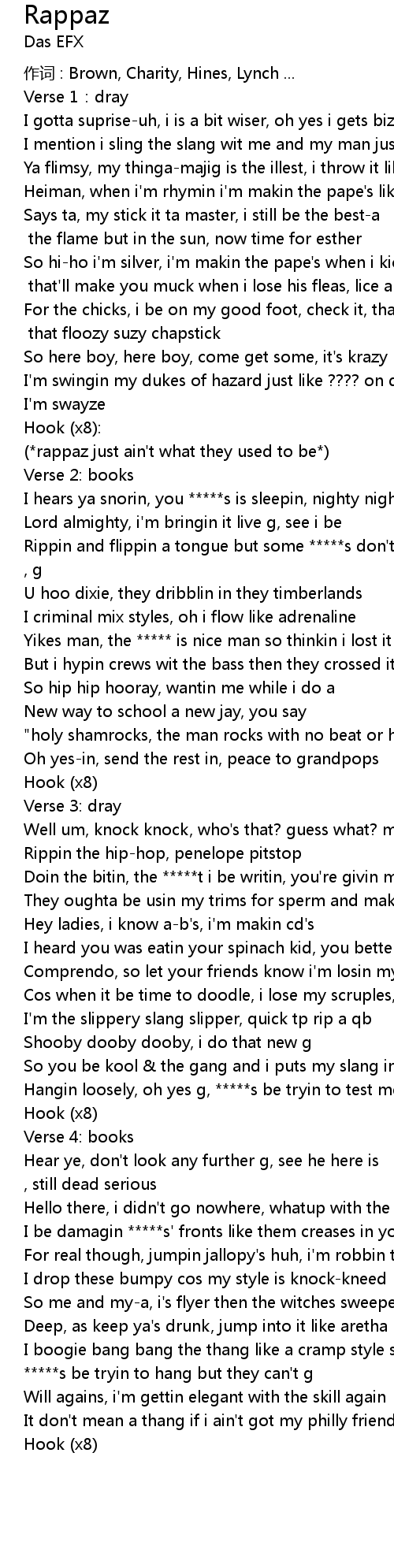 | Doin the bitin, the *****t i be writin, you're givin me rabies | |