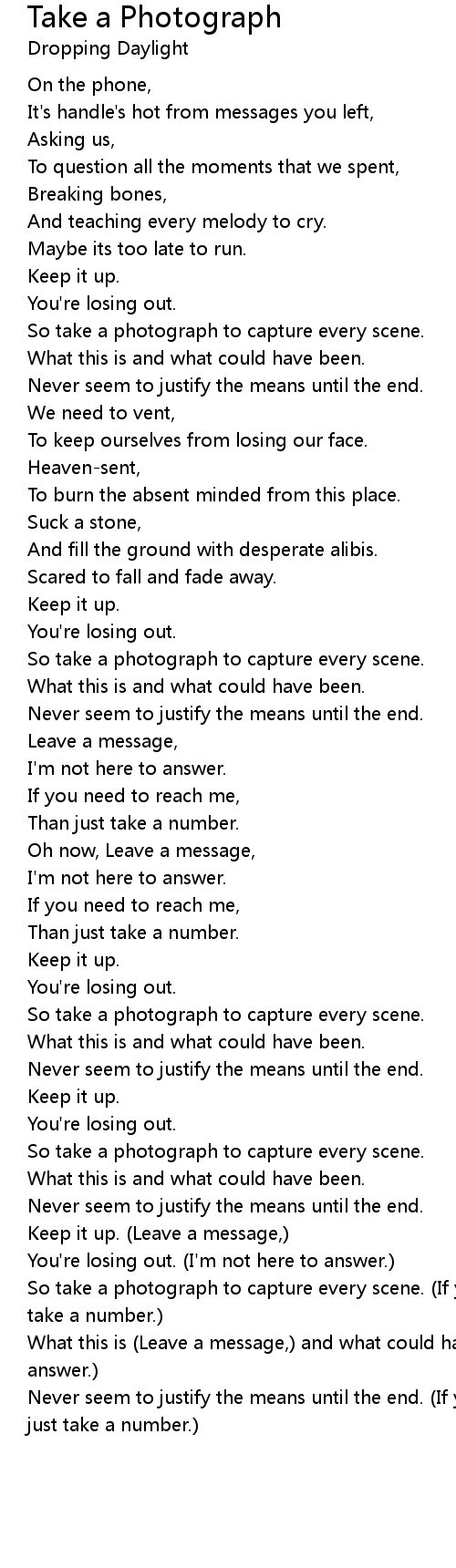 So take a photograph to capture every scene. (If you need to reach me, than just take a number.) |