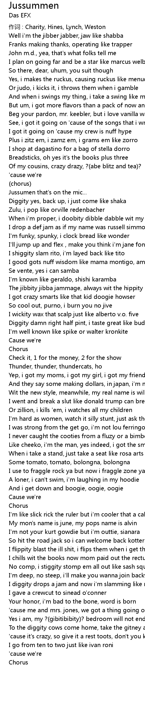 | Well i' m the jibber jabber, jaw like shabba | |