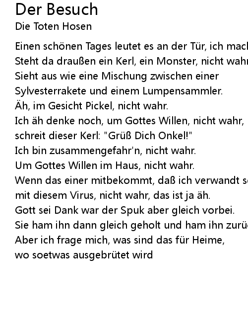 | Einen sch nen Tages leutet es an der Tü r, ich mache auf: | |