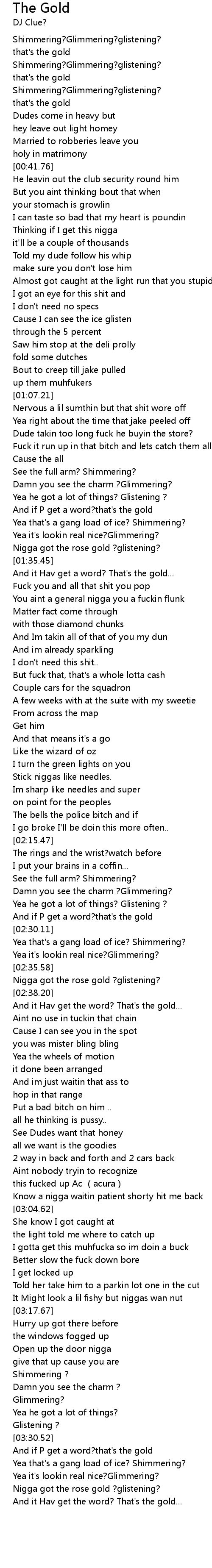 | [03:39.42] | Nigga got the rose gold ? glistening? |