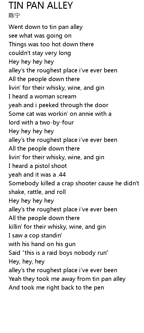 | Went down to tin pan alley | |