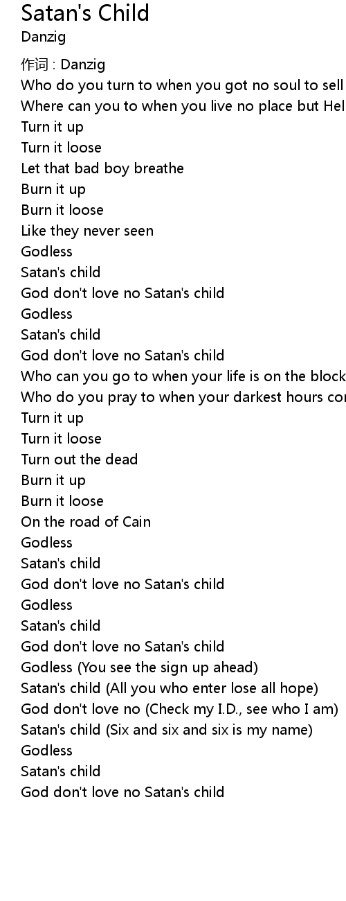 | God don' t love no Satan' s child | |
