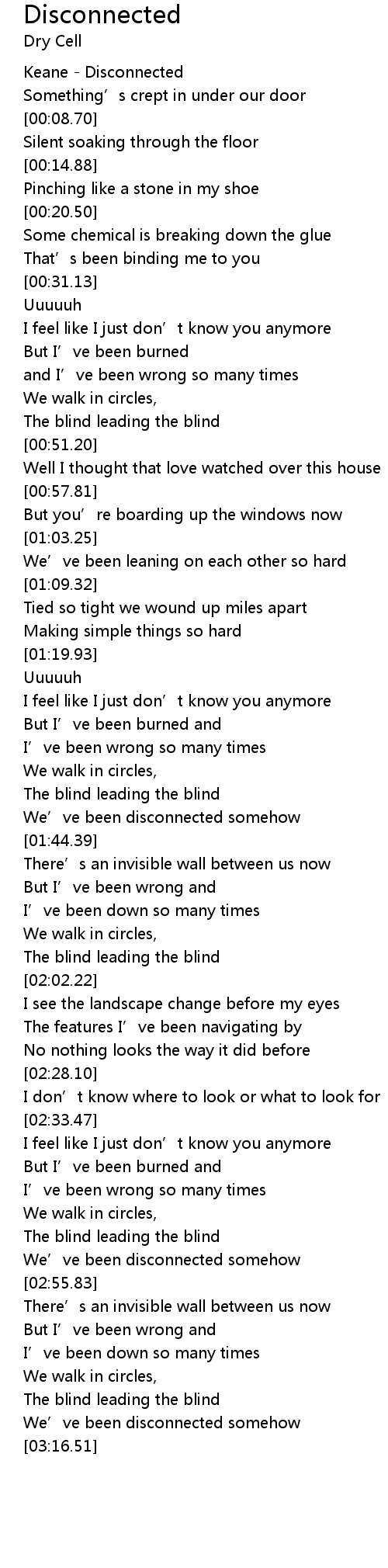 | [00:35.94] | I feel like I just don' t know you anymore |
