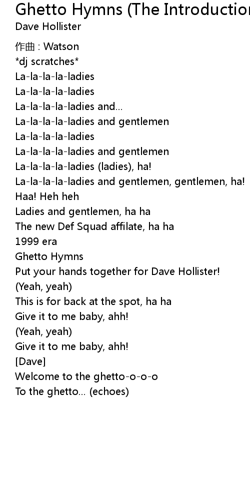 | 歌曲 | Ghetto Hymns (The Introduction) |