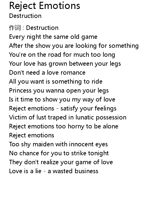 | 歌曲 | Reject Emotions |