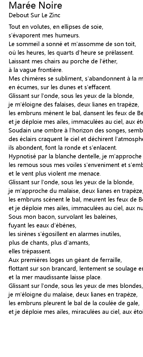 | Soudain une ombre a l' horizon des songes, semble avaler la mer, | |