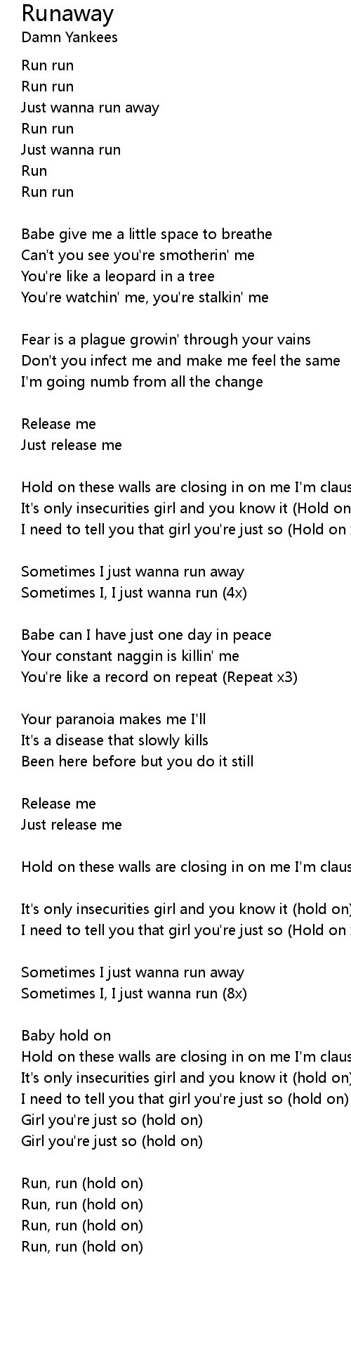 Sometimes I, I just wanna run (8x) |