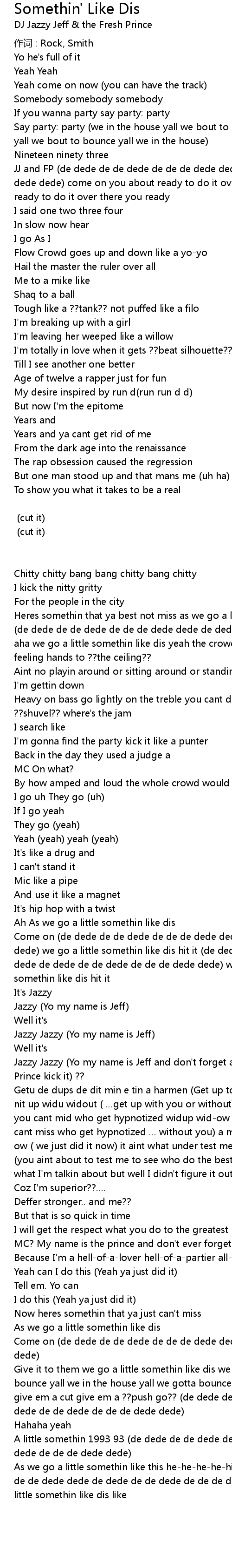 | Heres somethin that ya best not miss as we go a little somethin like dis come on de dede de de dede de de de dede dede de dede de de dede de de de dede dede aha we go a little somethin like dis yeah the crowd rocks in the house top feeling hands to ?? the ceiling?? | |