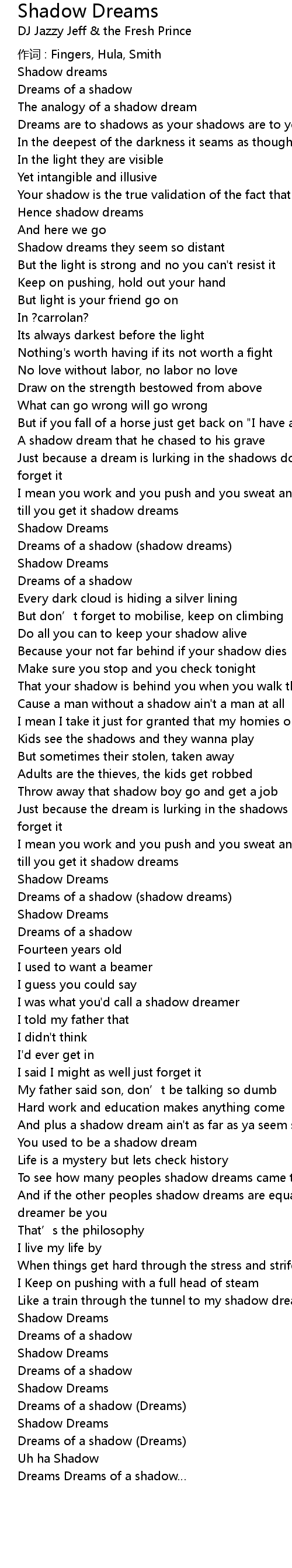 | And if the other peoples shadow dreams are equal then why cant the next shadow dreamer be you | |