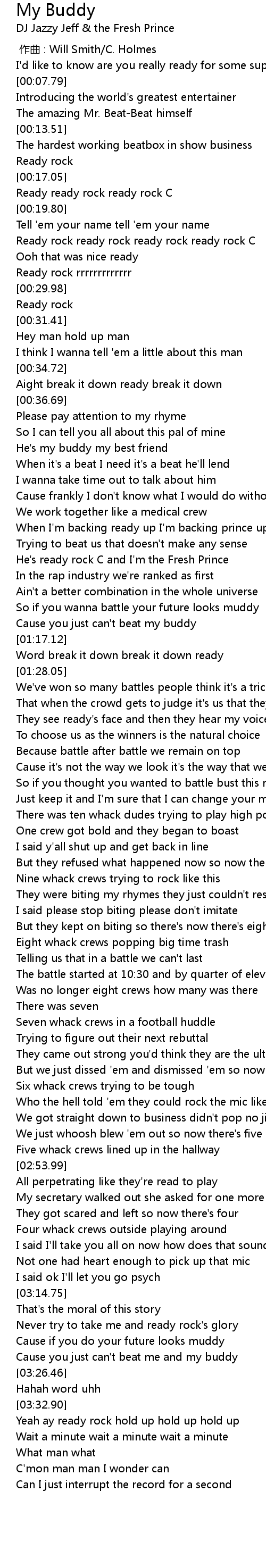 | [01:03.08] | He's ready rock C and I'm the Fresh Prince |
