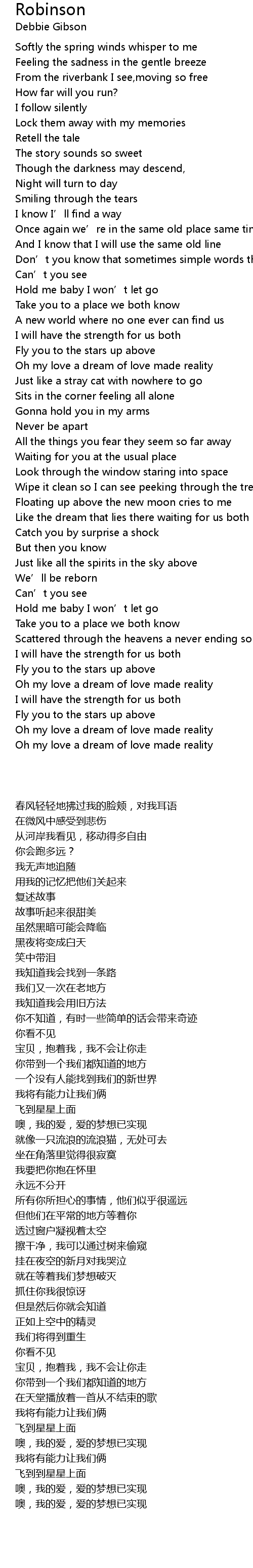| 歌曲 | Robinson |