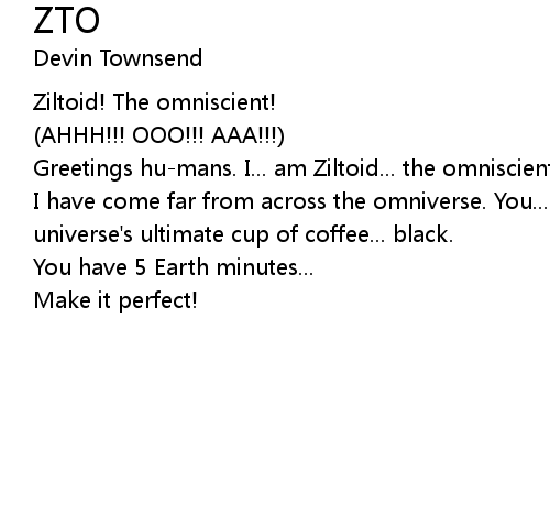 | Greetings hu-mans. I... am Ziltoid... the omniscient... | |