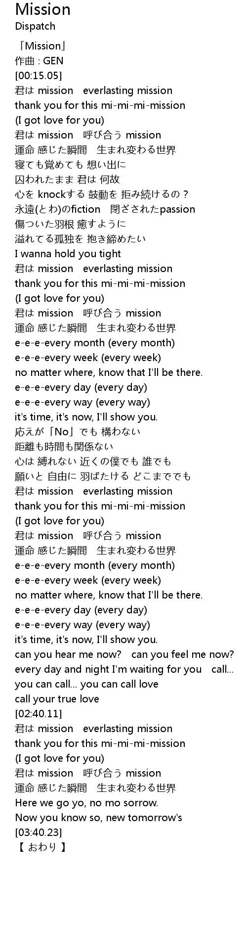 | [01:58.09] | thank you for this mi-mi-mi-mission |