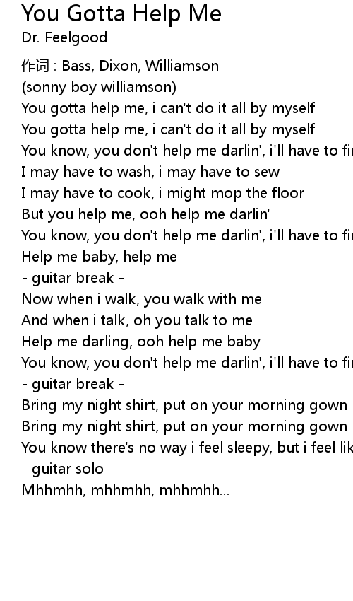 | You gotta help me, i can' t do it all by myself | |