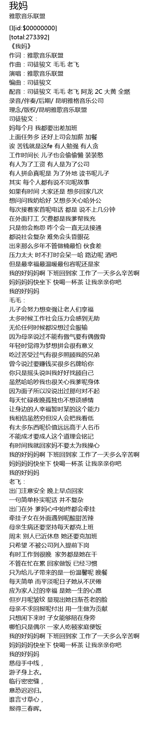 | [00:03.548] | 作词:雅歌音乐联盟 |