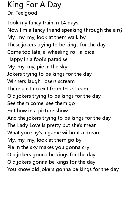 You know old jokers gonna be kings for the day |