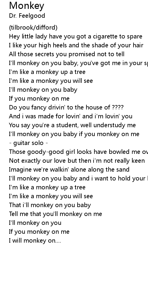 I'll monkey on you baby if you monkey on me