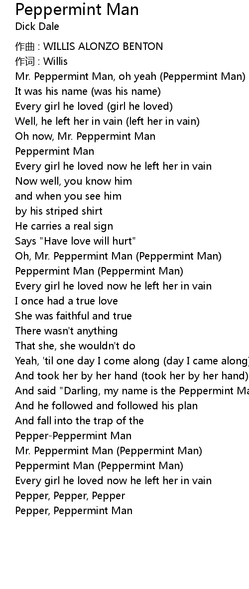 | Mr. Peppermint Man, oh yeah Peppermint Man | |